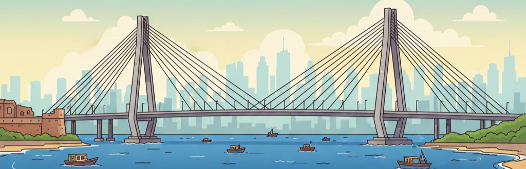 The Bandra-Worli Sea Link, officially called the Rajiv Gandhi Sea Link, stands as a milestone in Mumbai’s modern infrastructure development. Conceived in the late 1990s to ease the growing traffic between the western suburbs and South Mumbai, it was part of the ambitious Western Freeway Sea Project. The bridge’s foundation stone was laid in 1999, and after several engineering challenges and delays, it was finally inaugurated on 30 June 2009 by Sonia Gandhi.