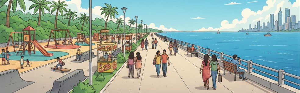 The Carter Road Promenade in Mumbai is not just a leisure spot but a symbol of thoughtful urban planning and public collaboration. Spread over nearly a kilometre, this sea-facing walkway is an example of how community-led efforts can transform a neglected shoreline into a vibrant public space.